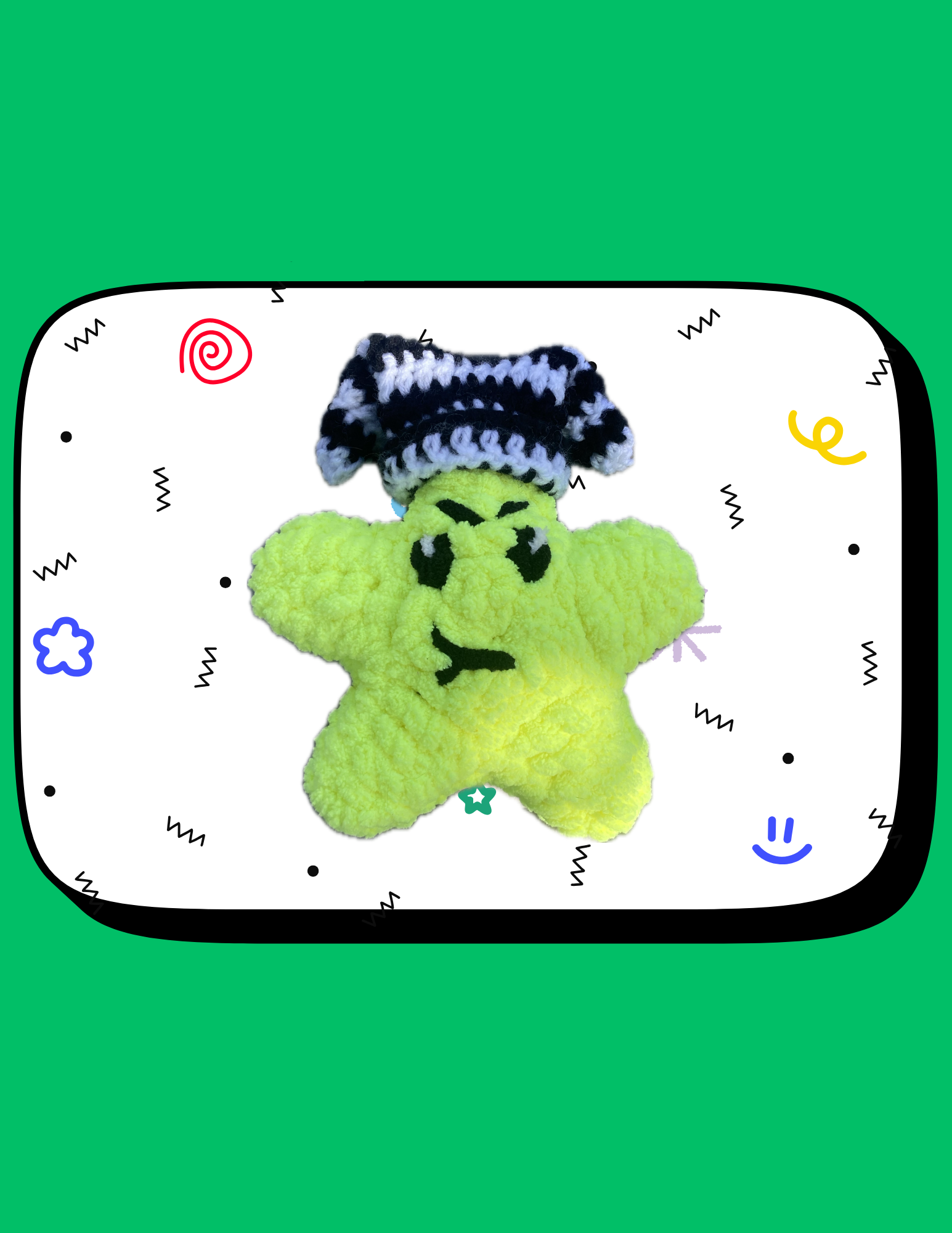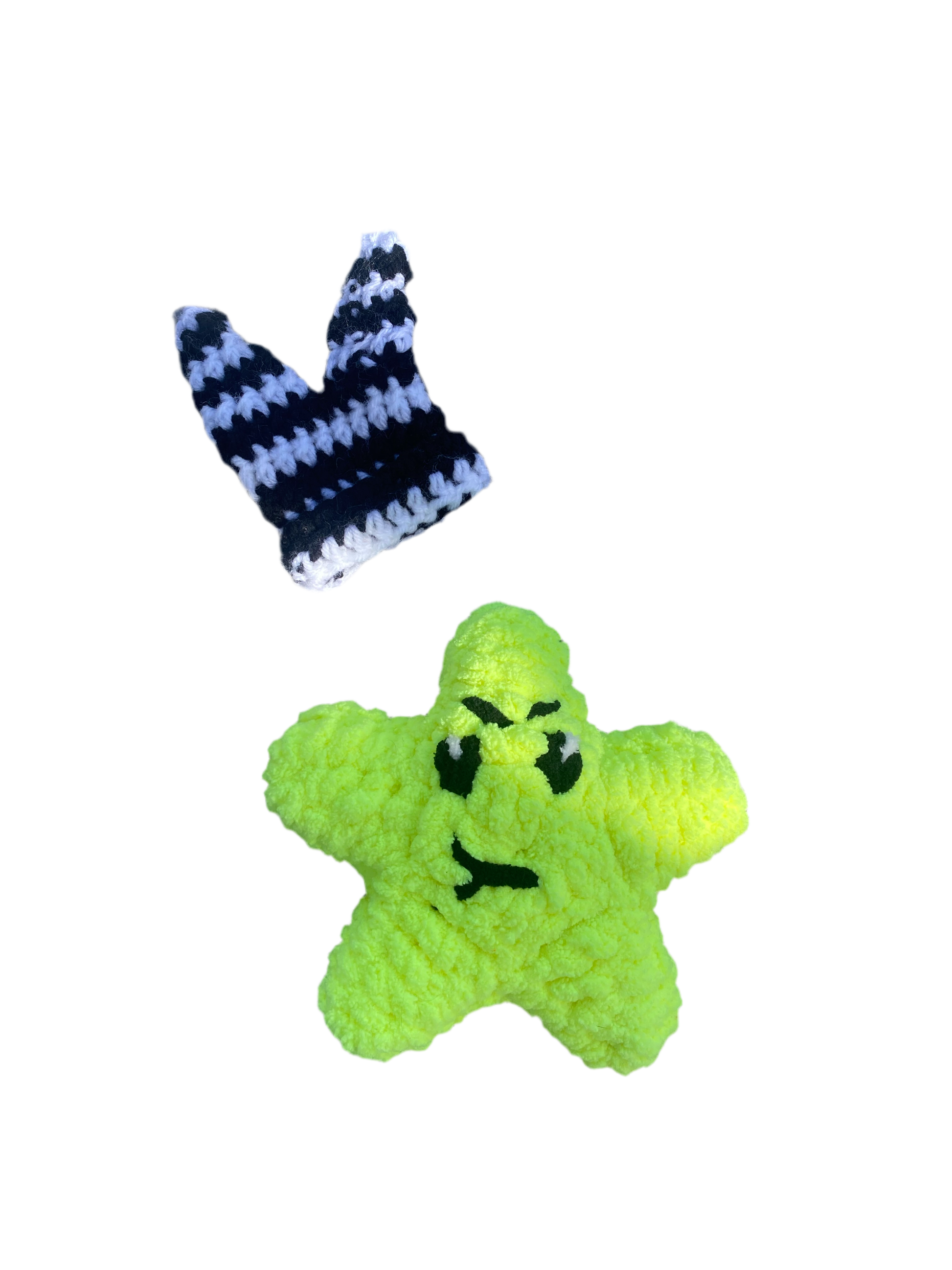 He is Karl’s brother, as you can see the family resemblance. The older of the two, stuffed tight and comes with his signature black and white jester hat.