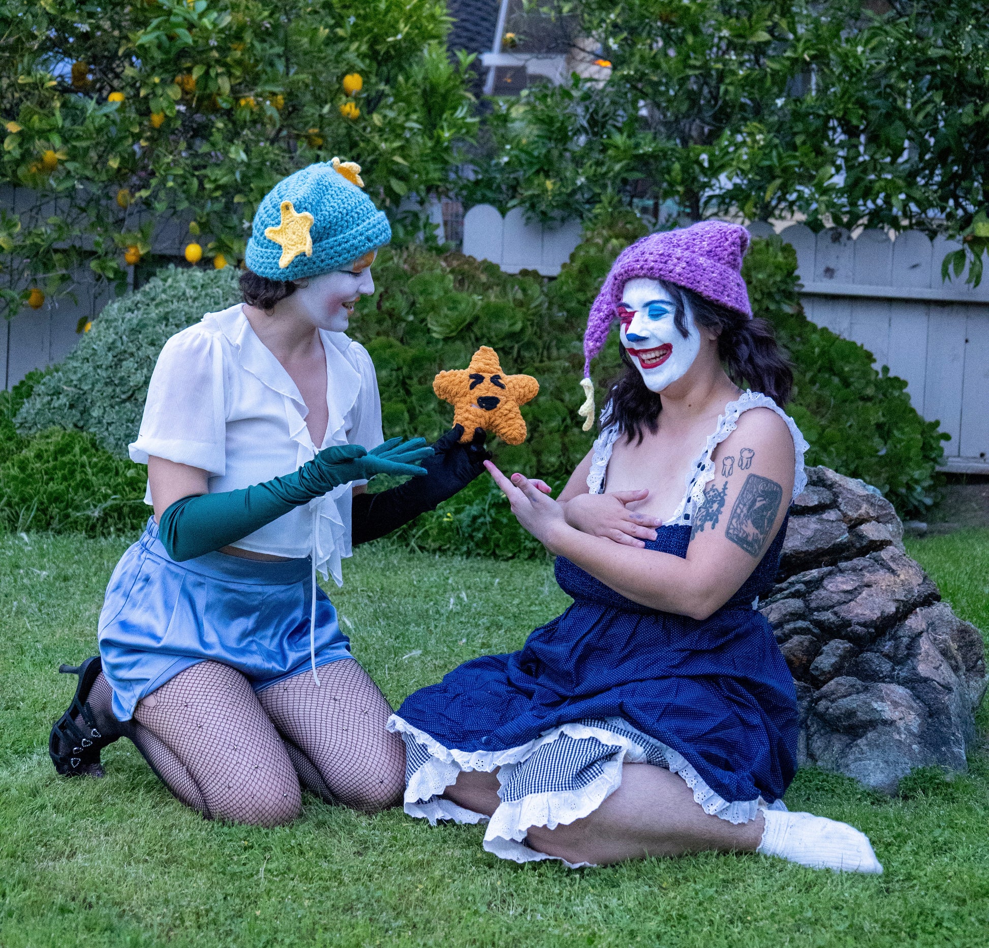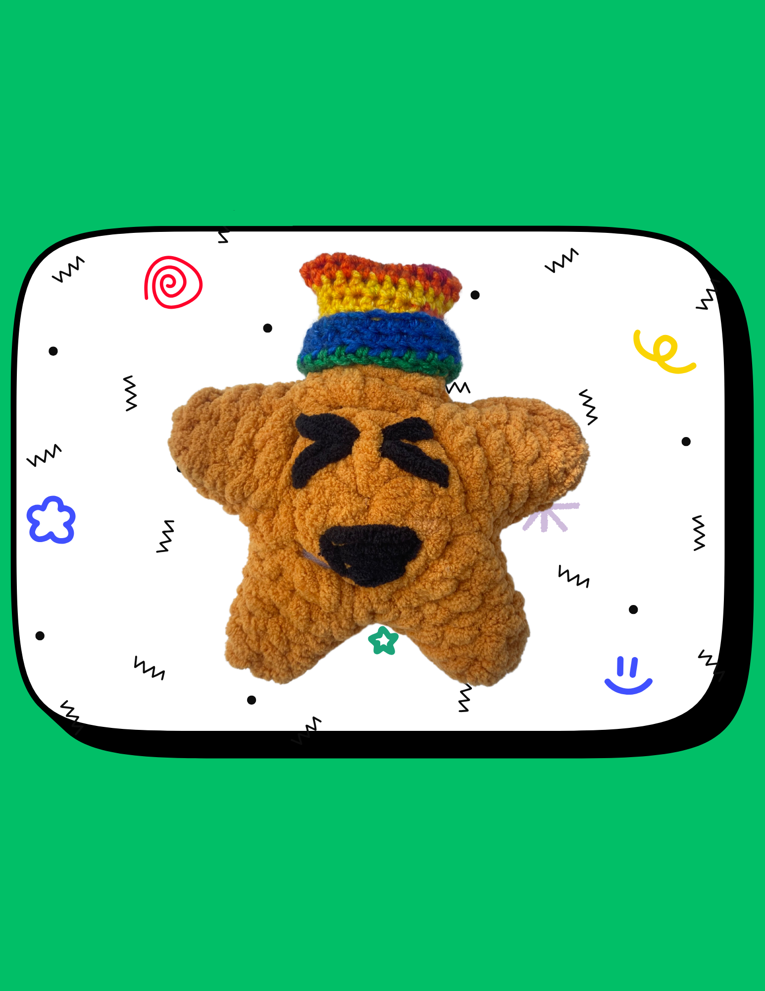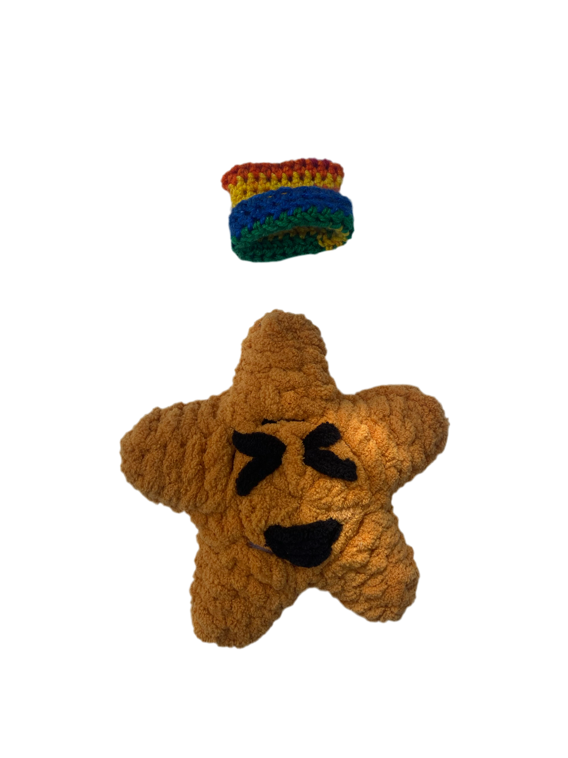 Fluffy mustard colored star. stuffed tighttt and with his signature rainbow hat :)