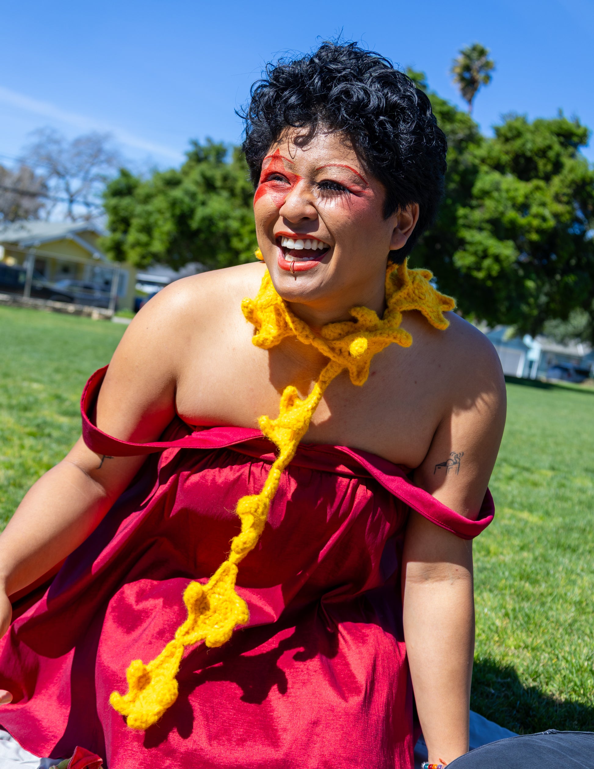 The two iconic duo, Patty and Selma, this time seen as yellow star scarves. Do they share any relation to each other besides the name?? No!! :)